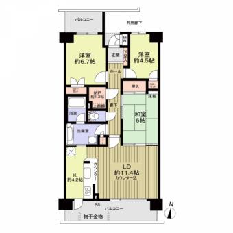 | 間取り | 3LDK | 専有面積 | 76.12m2(23.0坪) 壁芯 |