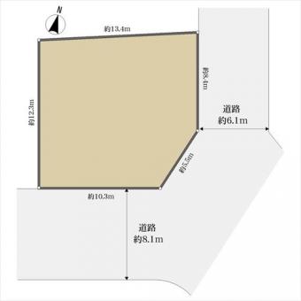| 接道状況 | 角地 北東約6.1m公道、間口:約8.4m 南約8.1m公道、間口:約10.3m | ||
