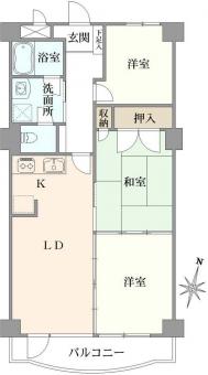 | 間取り | 3LDK | 専有面積 | 59.40m2(17.9坪) 壁芯 |