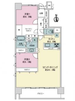 | 間取り | 2LDK | 専有面積 | 83.56m2(25.2坪) 壁芯 |