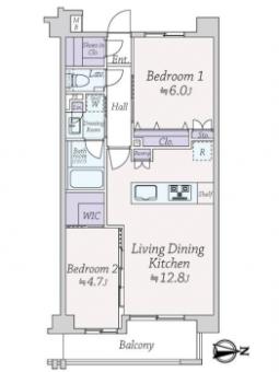 | 間取り | 2LDK | 専有面積 | 54.01m2(16.3坪) 壁芯 |