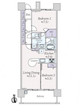 | 間取り | 2LDK | 専有面積 | 63.86m2(19.3坪) 壁芯 |