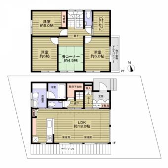 | 土地面積 | 128.16m2(38.7坪) 登記簿 別途私道負担20.00m2 | 建物延面積 | 102.59m2 |