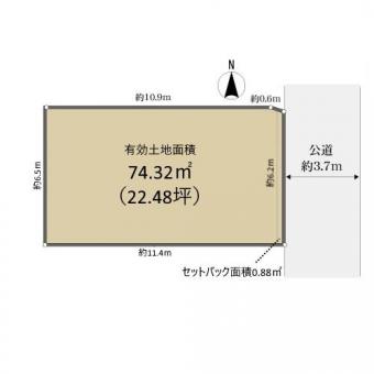 | 土地面積 | 75.20m2(22.7坪) 実測 (セットバック要約0.9m2) | ||