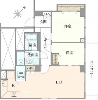 | 間取り | 2LDK | 専有面積 | 69.46m2(21.0坪) 壁芯 |