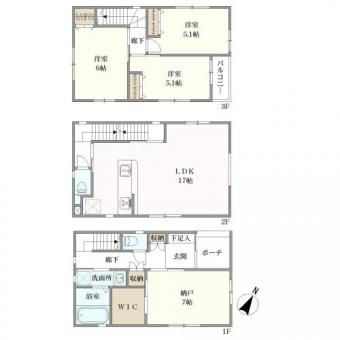 | 土地面積 | 72.90m2(22.0坪) 実測 別途私道負担0.37m2 路地状部分約25.6m2含む | 建物延面積 | 99.82m2 |