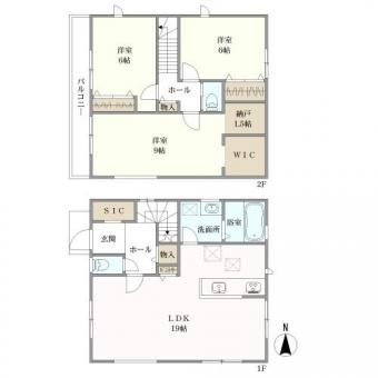 | 備考 | WIC・・・ウォークインクローゼット SIC・・・シューズインクローゼット本物件は、埋蔵文化財包蔵地に該当します。本物件は、丘陵地ゾーンに該当します。 ■総戸数/区画数:8 販売戸数/区画数:1 ■建築確認番号:第2025SBC-確01877H号 |