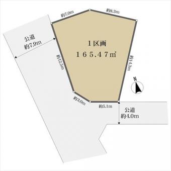 | 接道状況 | 角地 西約7.9m公道、間口:約12.5m 南約4.0m公道、間口:約5.1m | ||