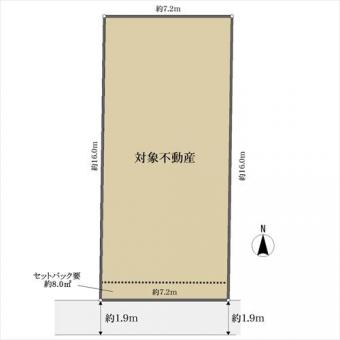 | 接道状況 | 一方 南約1.9m公道、間口:約7.2m | ||