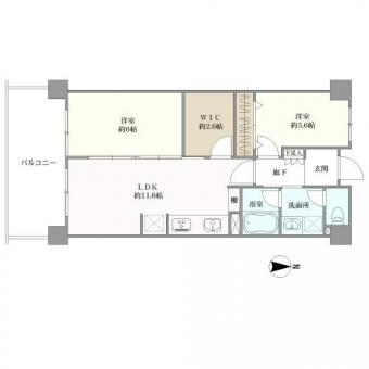 | 間取り | 2LDK | 専有面積 | 53.44m2(16.1坪) 壁芯 |