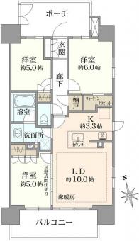 | 間取り | 3LDK | 専有面積 | 65.10m2(19.6坪) 壁芯 |