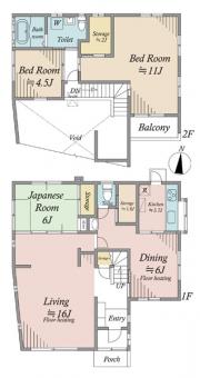 | 土地面積 | 184.52m2(55.8坪) 登記簿 別途私道負担338.31m2 | 建物延面積 | 117.80m2 |