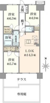 | 間取り | 3LDK | 専有面積 | 67.80m2(20.5坪) 壁芯 |