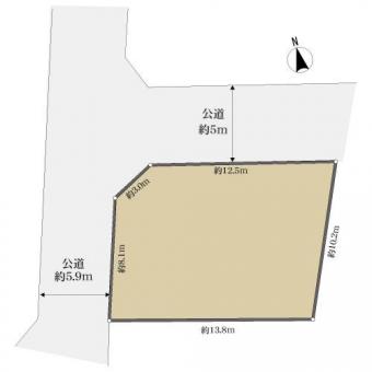 | 接道状況 | 角地 西5.9m公道、間口:8.1m 北5.0m公道、間口:12.5m | ||
