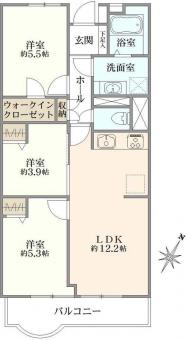 | 間取り | 3LDK | 専有面積 | 63.84m2(19.3坪) |