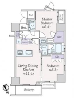 | 間取り | 2LDK | 専有面積 | 55.10m2(16.6坪) 壁芯 |