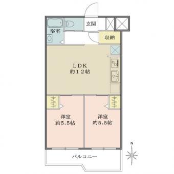 | 間取り | 2LDK | 専有面積 | 46.64m2(14.1坪) 壁芯 |