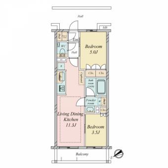 | 間取り | 2LDK | 専有面積 | 44.44m2(13.4坪) 壁芯 |