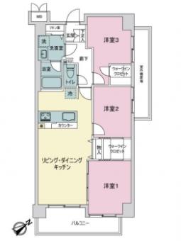 | 間取り | 3LDK | 専有面積 | 64.57m2(19.5坪) 壁芯 |