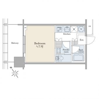 | 間取り | 1K | 専有面積 | 25.13m2(7.6坪) 壁芯 |