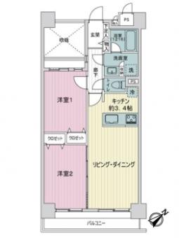 | 間取り | 2LDK | 専有面積 | 55.63m2(16.8坪) 壁芯 |