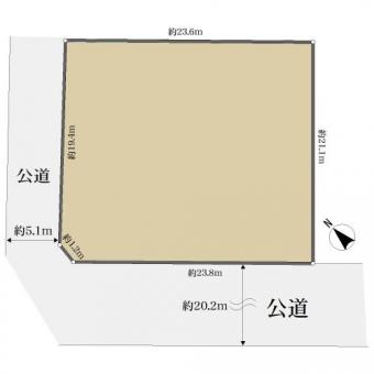 | 接道状況 | 二方 南西約20.2m公道、間口:約23.8m 北西約5.1m公道、間口:約19.4m | ||