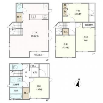 | 土地面積 | 65.06m2(19.6坪) 実測 | 建物延面積 | 110.85m2 車庫部分12.42m2含む |