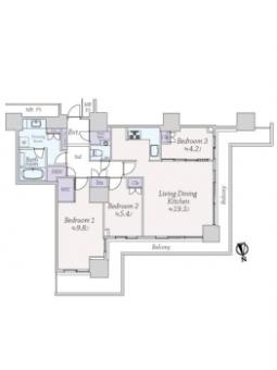 | 間取り | 3LDK | 専有面積 | 92.59m2(28.0坪) 壁芯 |