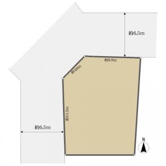 | 接道状況 | 角地 西約6.5m公道、間口:約11.2m 北約6.5m公道、間口:約8.9m | ||