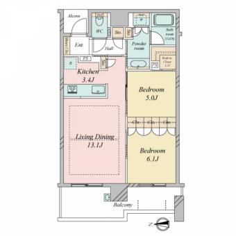 | 間取り | 2LDK | 専有面積 | 65.42m2(19.7坪) 壁芯 |