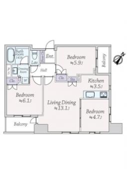 | 間取り | 3LDK | 専有面積 | 63.00m2(19.0坪) 壁芯 |