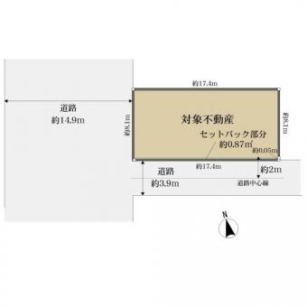 | 接道状況 | 二方 西約14.9m公道、間口:約8.1m 南約3.9m公道、間口:約17.4m | ||