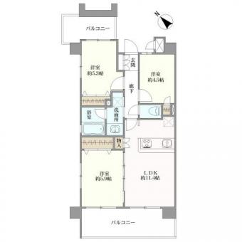 | 間取り | 3LDK | 専有面積 | 59.37m2(17.9坪) 壁芯 |