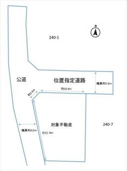 | 接道状況 | 二方 北5.0m私道、間口:13.2m(位置指定道路) 西4.0m公道、間口:13.9m | ||