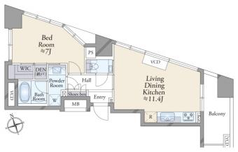| 間取り | 1LDK | 専有面積 | 45.63m2(13.8坪) 壁芯 |