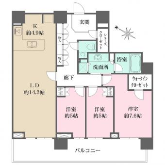 | 間取り | 3LDK | 専有面積 | 90.26m2(27.3坪) 壁芯 |