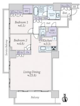 | 間取り | 2LDK | 専有面積 | 94.21m2(28.4坪) 壁芯 |