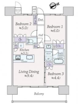 | 間取り | 3LDK | 専有面積 | 60.30m2(18.2坪) 壁芯 |