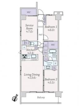 | 間取り | 2SLDK | 専有面積 | 80.75m2(24.4坪) 壁芯 |