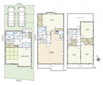 | 土地面積 | 100.11m2(30.2坪) 登記簿 別途私道負担8.56m2 | 建物延面積 | 141.75m2 |