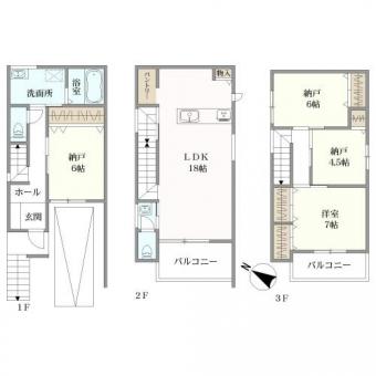 | 土地面積 | 69.07m2(20.8坪) 登記簿 | 建物延面積 | 116.85m2 車庫部分9.93m2含む |