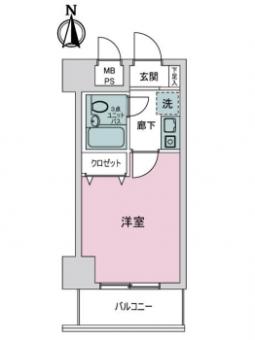 | 間取り | 1K | 専有面積 | 18.43m2(5.5坪) 壁芯 |