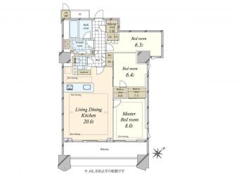 | 間取り | 3LDK | 専有面積 | 91.63m2(27.7坪) 壁芯 |