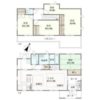 | 土地面積 | 201.83m2(61.0坪) 登記簿 | 建物延面積 | 122.56m2 |