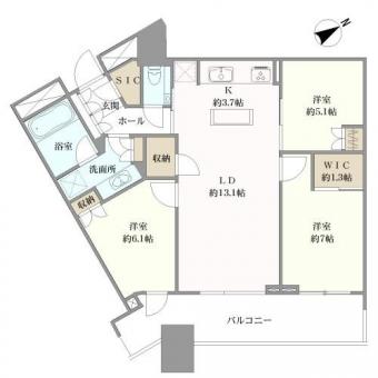 | 間取り | 3LDK+WIC+SIC | 専有面積 | 78.54m2(23.7坪) 壁芯 |