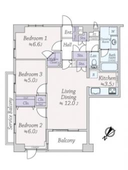 | 間取り | 3LDK | 専有面積 | 75.52m2(22.8坪) 壁芯 |