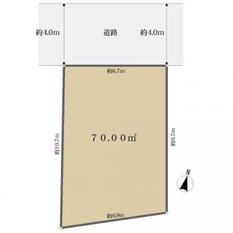 | 土地面積 | 70.00m2(21.1坪) 実測 別途私道負担9.72m2 | ||