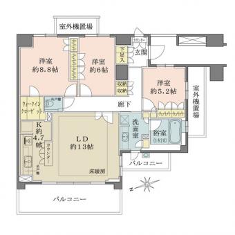 | 間取り | 3LDK | 専有面積 | 94.91m2(28.7坪) 壁芯 |