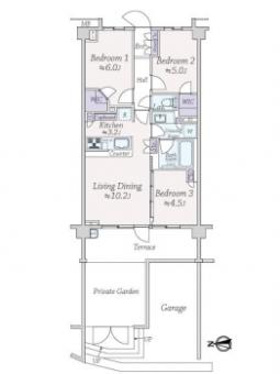 | 間取り | 3LDK | 専有面積 | 64.05m2(19.3坪) 壁芯 |