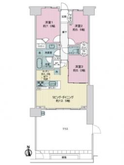 | 間取り | 3LDK | 専有面積 | 72.42m2(21.9坪) 壁芯 |